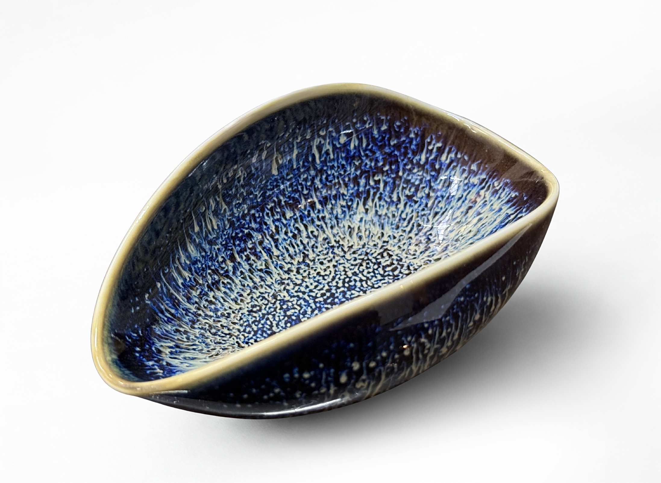 Naczynie wykonane jest z ceramiki i pokryte szkliwem o głębokiej, niebieskiej tonacji. Subtelne przejścia kolorystyczne oraz nieregularna faktura szkliwa nadają mu spokojny, organiczny charakter. Każdy egzemplarz może delikatnie różnić się wybarwieniem, co podkreśla naturalność materiału.