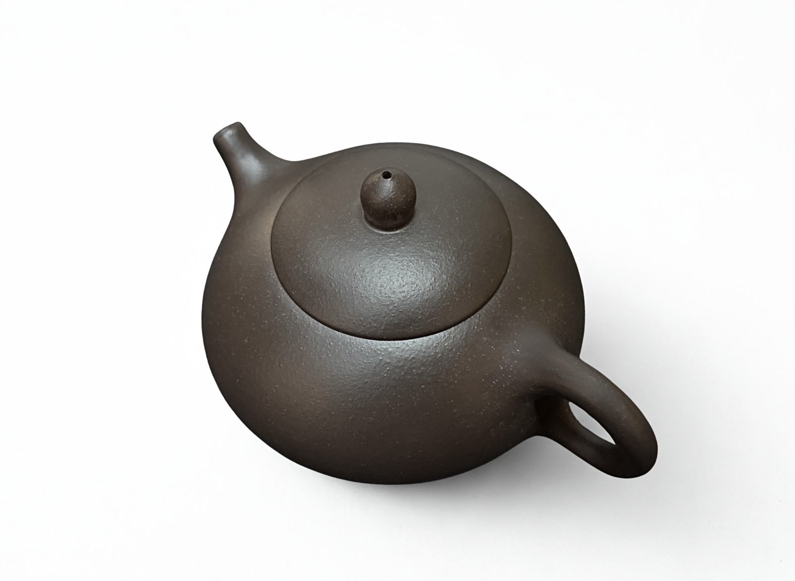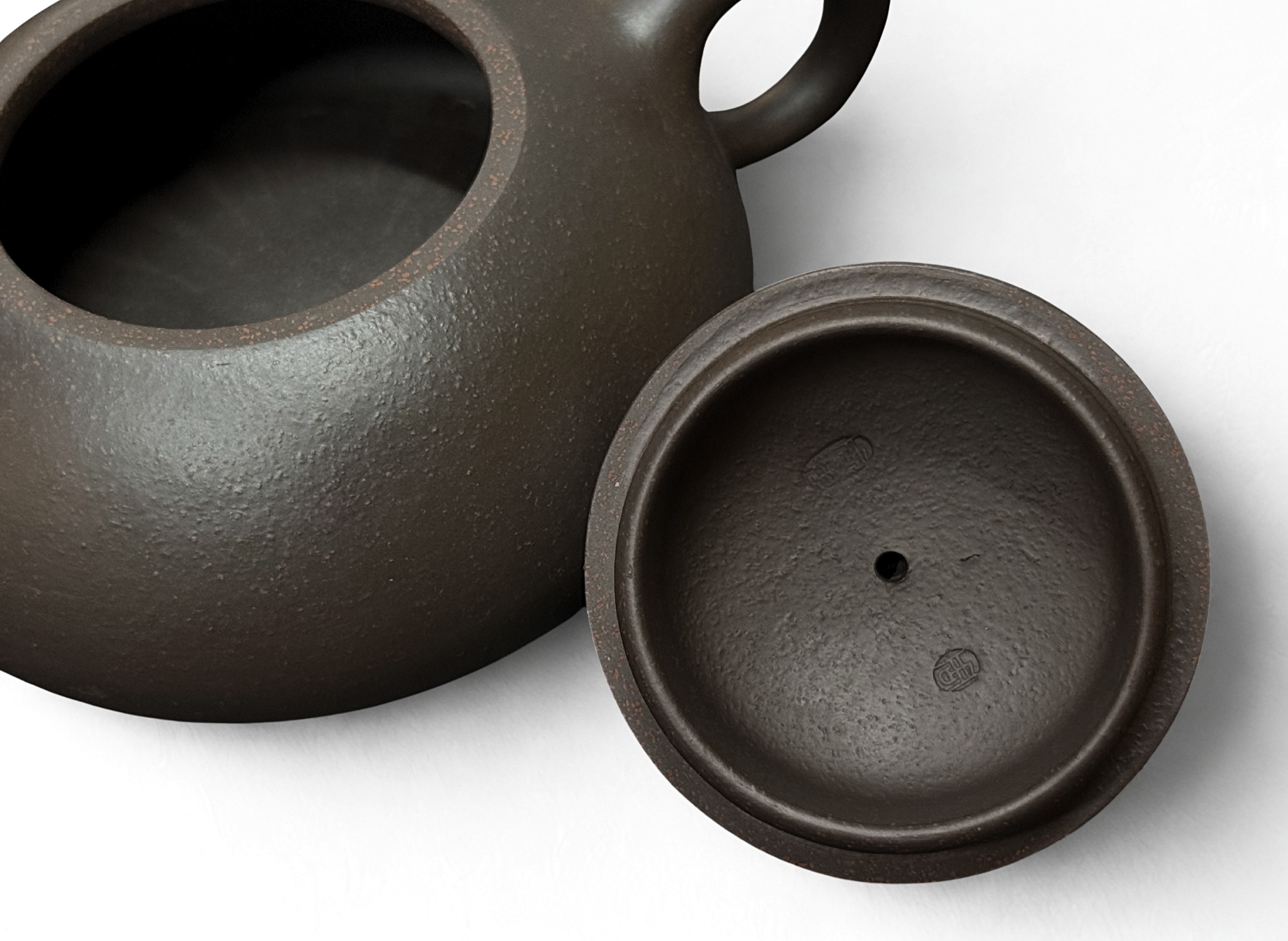 Ciemna, lekko chropowata powierzchnia nadaje czajnikowi surowy, autentyczny charakter. Brak szkliwa pozwala na naturalną interakcję między liśćmi herbaty a gliną, co wpływa na bardziej zrównoważony i miękki profil naparu.