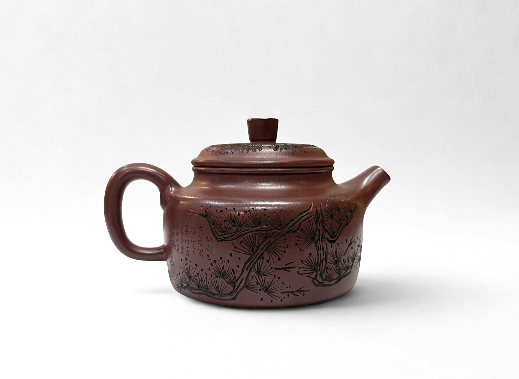 Zdobienie wykonano ręcznie, co nadaje każdemu egzemplarzowi indywidualny charakter. Motyw sosny i żurawia symbolizuje długowieczność, wytrwałość oraz spokój, dlatego naczynie naturalnie wpisuje się w filozofię herbaty, w której liczy się uważność i harmonijny rytm parzenia. Co więcej, subtelna grawerka tworzy przyjemny kontrast z gładką powierzchnią gliny, a sama kompozycja nawiązuje do klasycznej chińskiej sztuki.