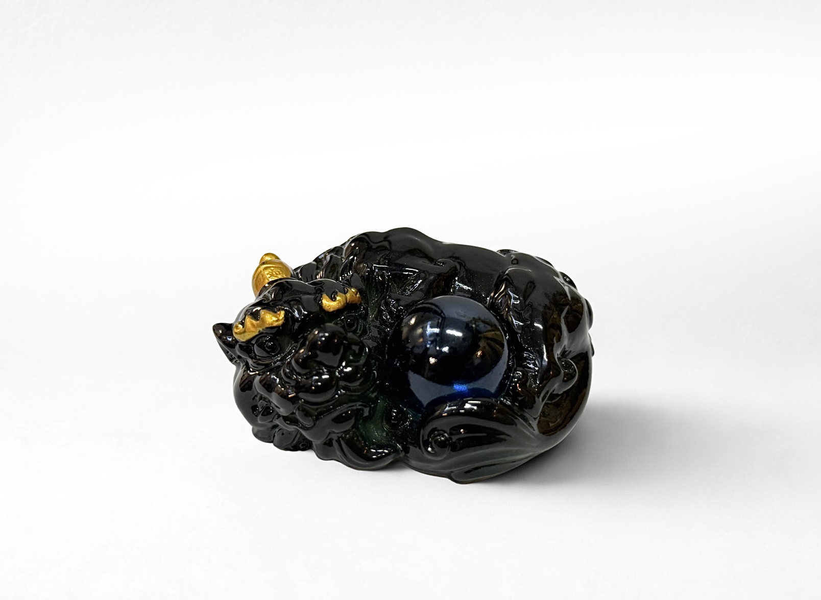 Figurka do herbaty „Pi Xiu Onyx” przedstawia mityczne stworzenie Pi Xiu, od wieków uznawane w kulturze chińskiej za symbol bogactwa, ochrony i szczęścia. Umieszczana tradycyjnie na stole herbacianym, towarzyszy ceremonii parzenia herbaty jako cichy strażnik energii i harmonii. Model Onyx wykonany jest z żywicy i zachwyca elegancką, ciemną formą oraz wyjątkowym efektem zmiany koloru pod wpływem gorącej wody.