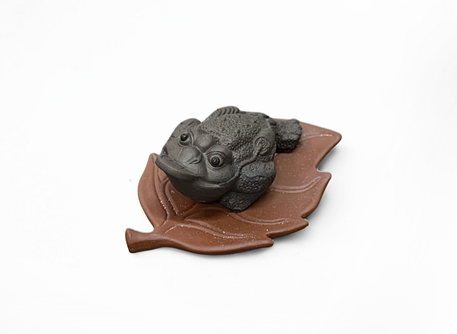 Figurka herbaciana Żaba na liściu – tea pet z gliny yixing