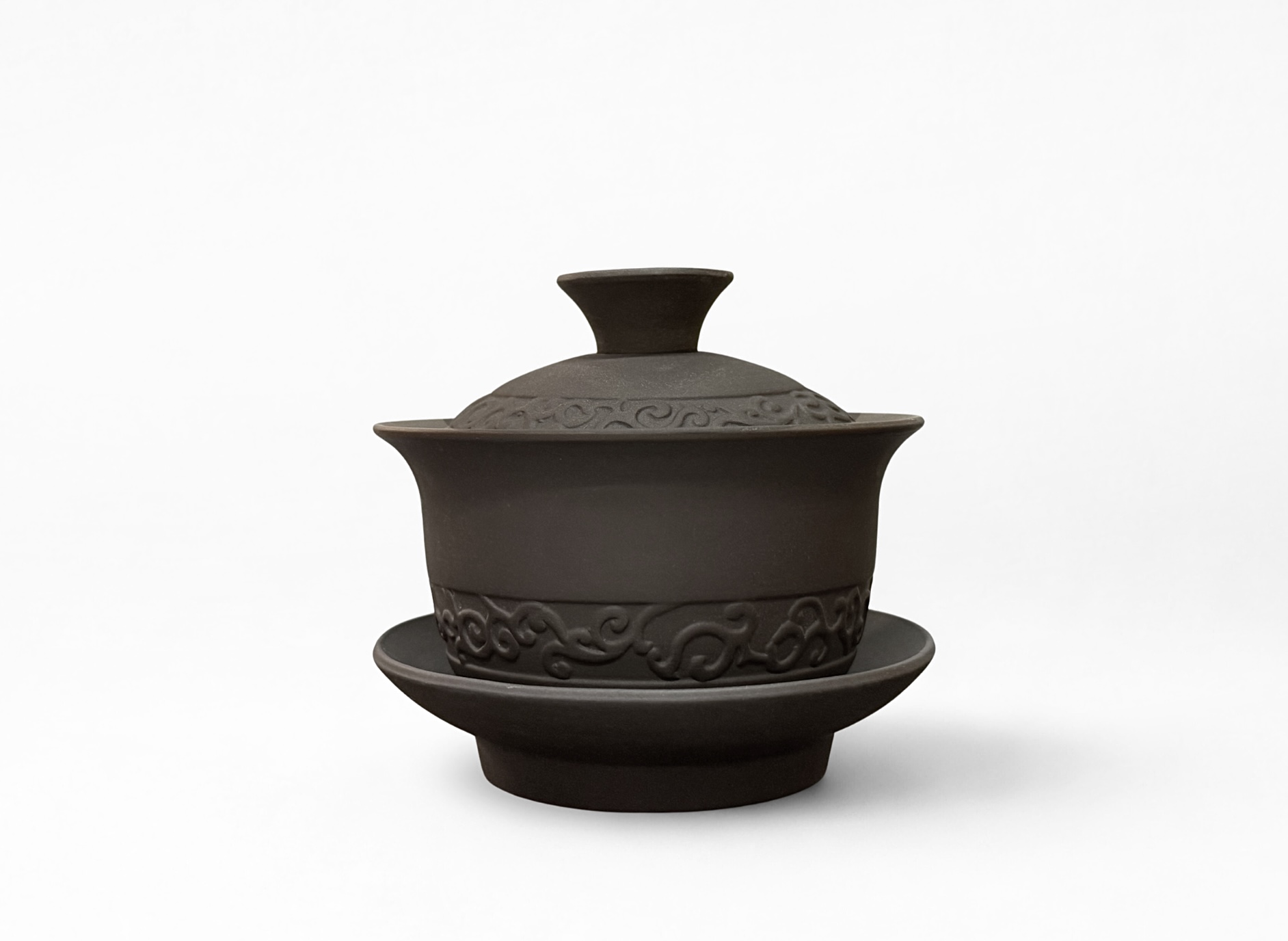 Gaiwan „Głębia” to naczynie stworzone z myślą o herbacie parzonej wolno, uważnie i z koncentracją. Jego nazwa oddaje charakter formy oraz sposób pracy z naparem – skupiony, stabilny i pogłębiony. Klasyczna sylwetka gaiwanu została połączona z ciemną gliną i subtelnym ornamentem, nadając całości spokojny, niemal medytacyjny wyraz.