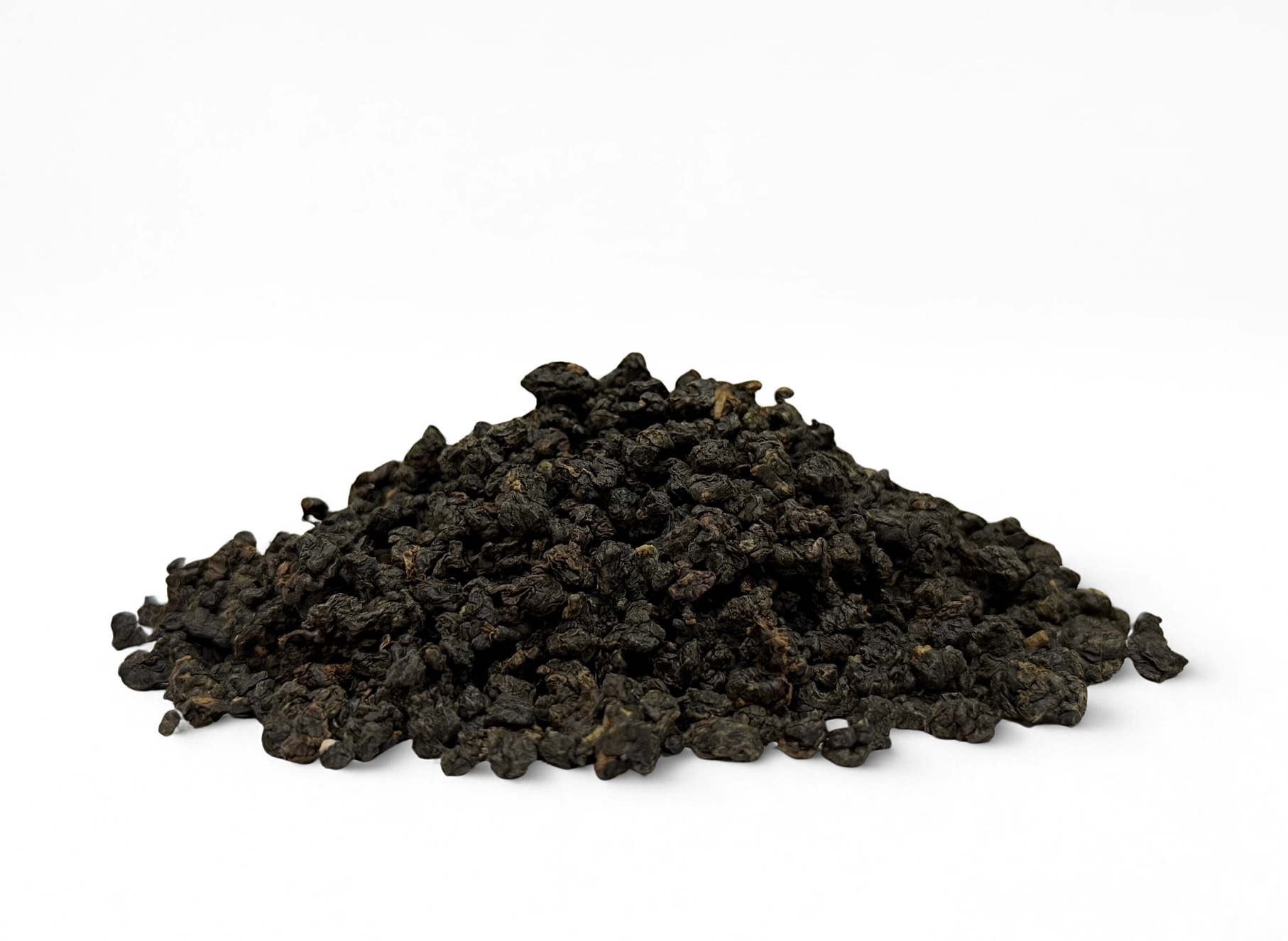 Zastosowany kultywar nie ma oficjalnej nazwy – bazuje na hybrydach Jin Xuan oraz Ruan Zhi, co nadaje herbacie nowoczesny, ale bardzo harmonijny charakter. Liście są ciasno zwinięte w małe kuleczki, grafitowo-czarne z pomarańczowo-czerwonymi tipsami. Oksydacja odbywa się w małych boksach z kontrolowanym dopływem powietrza i ciepłem z lamp, co pozwala precyzyjnie kształtować profil aromatyczny.