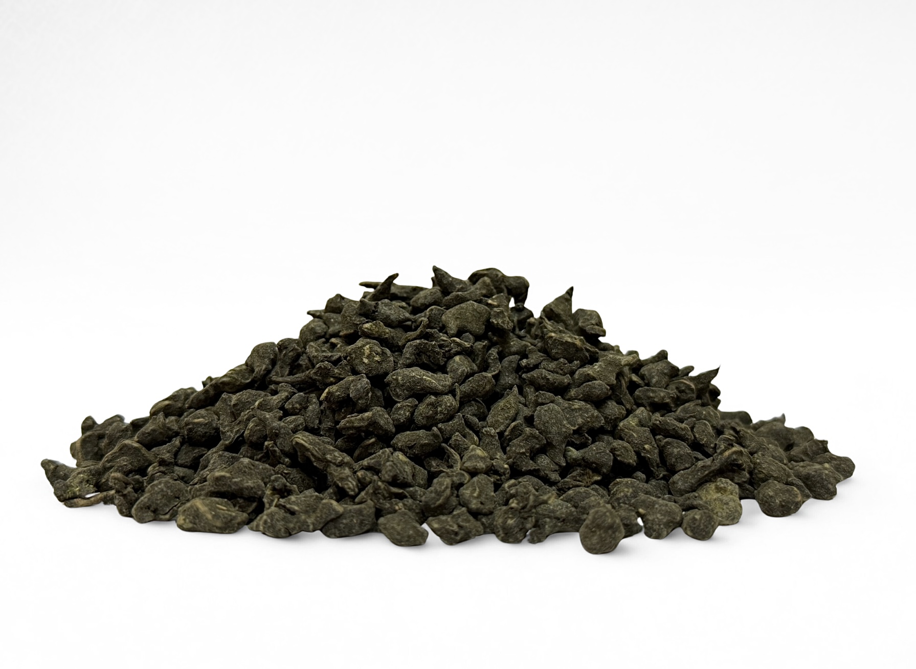Żeń-szeniowy Oolong to wyjątkowy styl herbaty powstający w regionie Xian You w prowincji Fujian. W przeciwieństwie do klasycznych oolongów nie jest to jedynie herbata z jednego kultywaru, lecz starannie opracowany produkt łączący wysokiej jakości oolong z naturalnym żeń-szeniem i lukrecją. Podczas procesu zwijania liście herbaty są pokrywane proszkiem z korzenia żeń-szenia oraz lukrecji, które wnikają w strukturę liścia i tworzą charakterystyczne, twarde kulki o ciemno-oliwkowym kolorze. Ten sposób produkcji jest popularny w Azji i znany z intensywnego aromatu oraz wyraźnego działania.