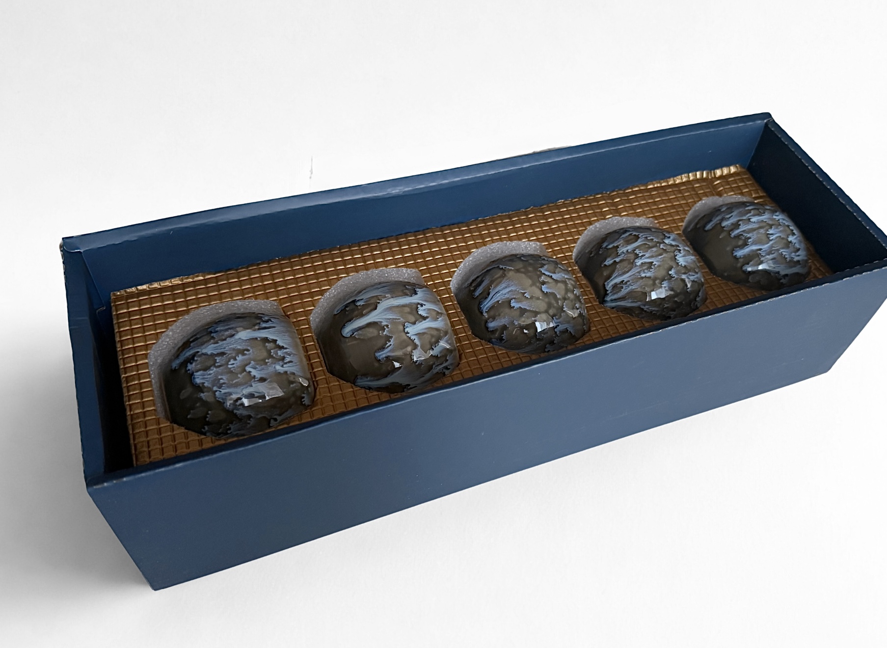 Zestaw czarek „Ye Yu” to komplet pięciu ceramicznych czarek o pojemności 140 ml, stworzony do spokojnych degustacji i codziennych sesji herbacianych. Nazwa nawiązuje do motywu „nocnego deszczu”, który świetnie oddaje charakter glazury: ciemna, głęboka baza z jasnymi, „spływającymi” przejściami przypomina krople na kamieniu. Każda czarka jest unikalna – układ glazury może się delikatnie różnić, co podkreśla rzemieślniczy styl zestawu.