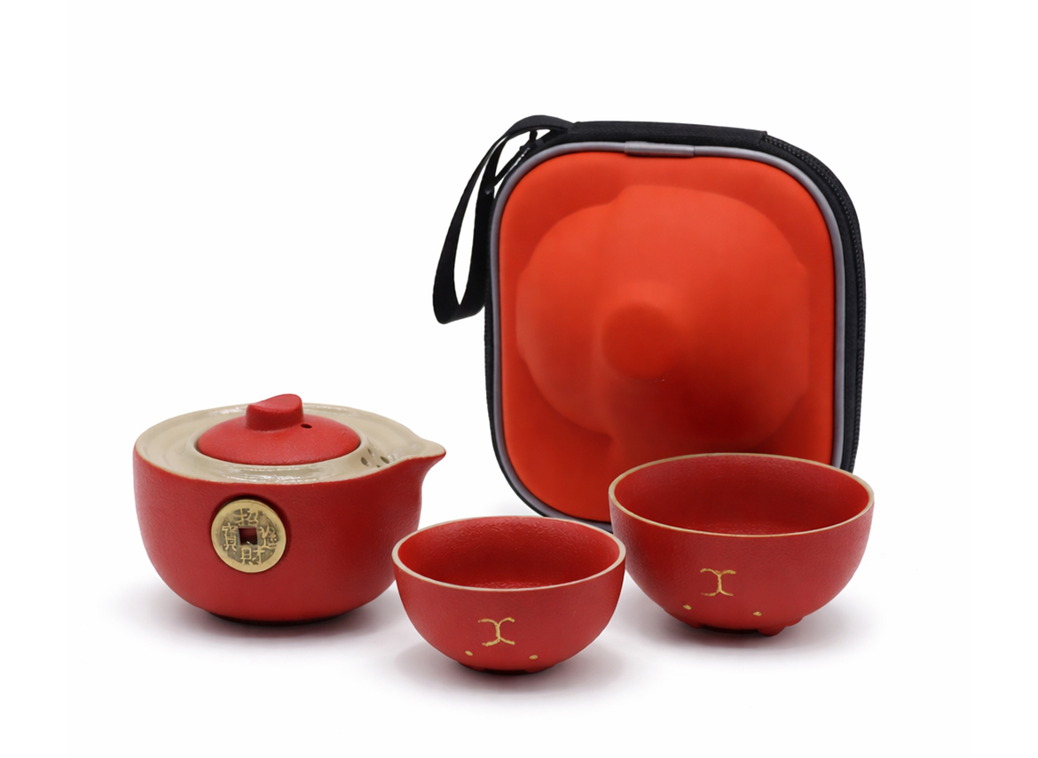 Zestaw do herbaty „Czerwony Kot” to kompaktowy i funkcjonalny komplet inspirowany chińską symboliką szczęścia i dobrobytu. Wykonany z ceramiki zestaw zawiera czajniczek o pojemności około 200 ml oraz dwie czarki, które razem tworzą uroczy motyw kota. Całość została zaprojektowana z myślą o wygodnym parzeniu herbaty w stylu gongfu cha, zarówno w domu, jak i w podróży.