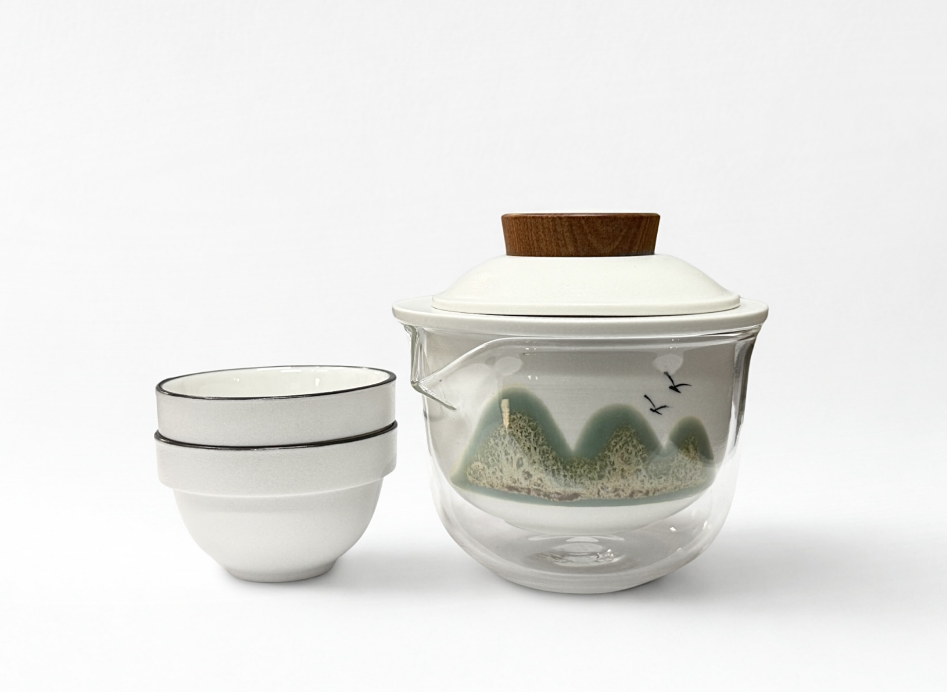Zestaw do herbaty „Dao” został stworzony z myślą o wygodnym i uporządkowanym parzeniu herbaty. W skład zestawu wchodzi ceramiczna kolba z sitkiem, szklany chahai o pojemności około 150 ml oraz dwie czarki po 50 ml. Taka konfiguracja pozwala oddzielić liście od naparu i zachować kontrolę nad intensywnością herbaty, co sprawdza się zarówno przy spokojnym parzeniu w domu, jak i podczas krótkich przerw w ciągu dnia.