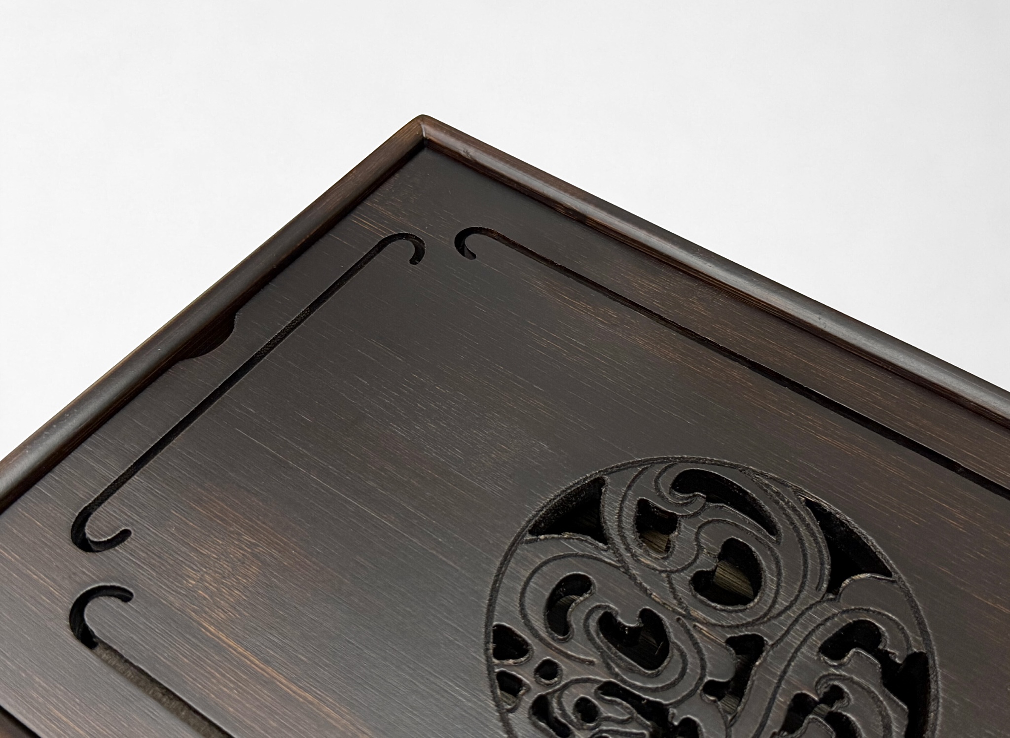 Доска была спроектирована с учётом комфорта во время заваривания. На ней можно разместить чайник, гайвань, чашки и другие необходимые для ритуала предметы. Благодаря большой поверхности аксессуары располагаются свободно, а пользователь получает полный контроль над процессом заваривания. Чабань оснащена системой отвода воды, которая упрощает поддержание чистоты. Вода стекает в нижний контейнер, а поверхность остаётся сухой и чистой. Такое решение делает церемонию более упорядоченной и комфортной.