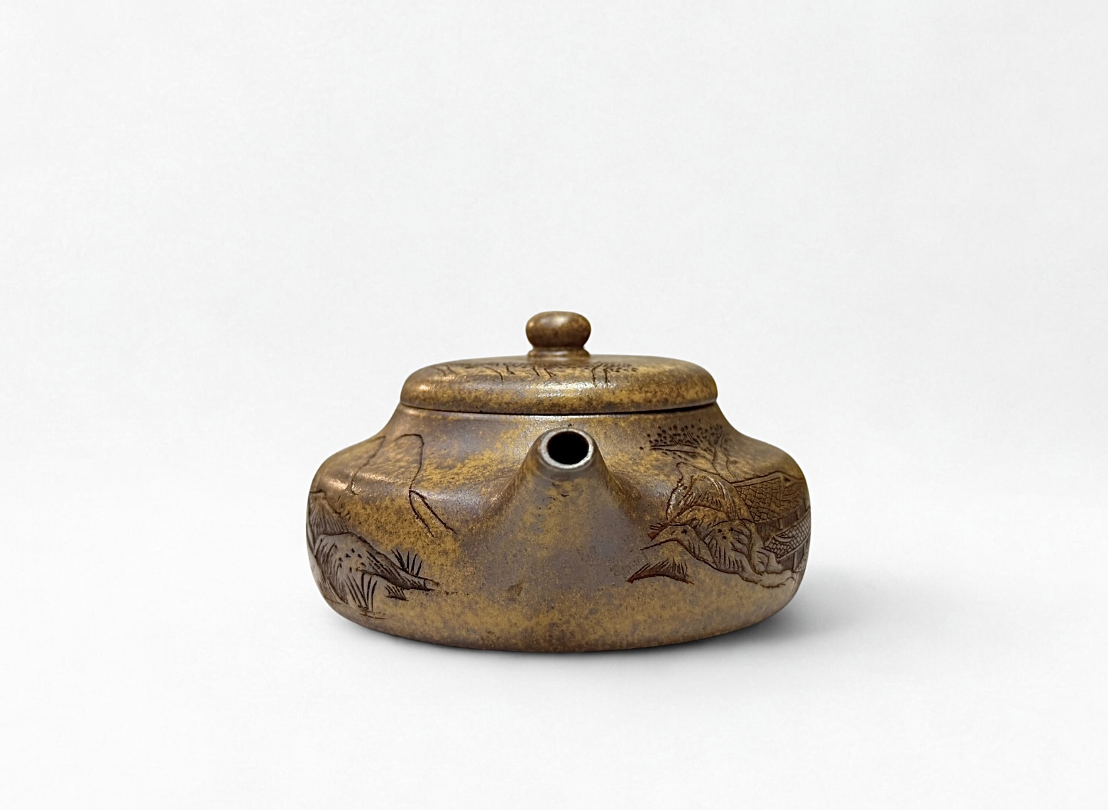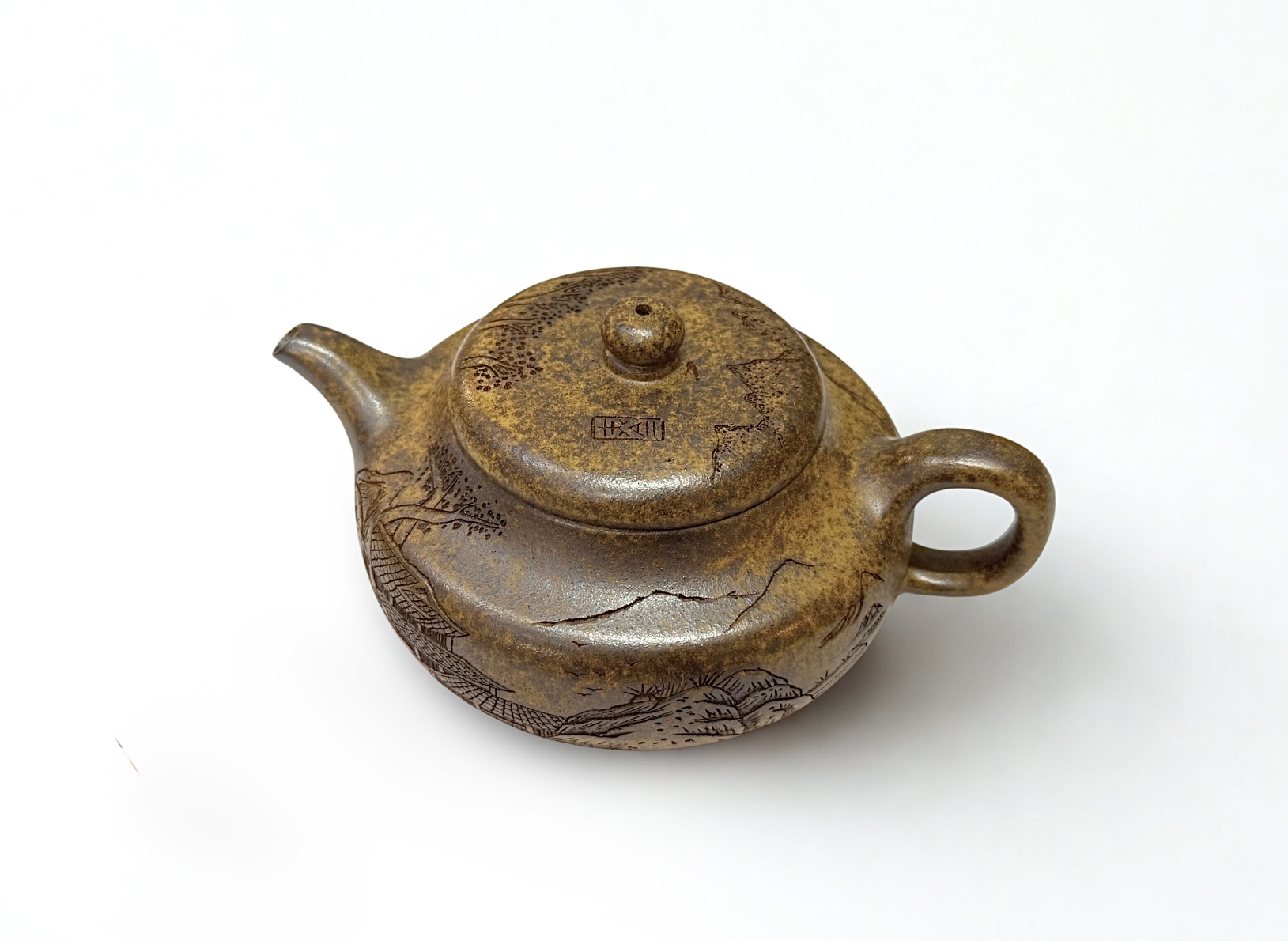 Декорация в стиле шаньшуй («горы и вода») придаёт этой модели спокойный, классический характер. Ручная резьба пейзажа отсылает к традиционным живописным свиткам, а естественный оттенок глины делает детали похожими на часть самой поверхности. Чайник хорошо сбалансирован, удобен в использовании и создан для тех, кто ценит как функциональность, так и искусство.