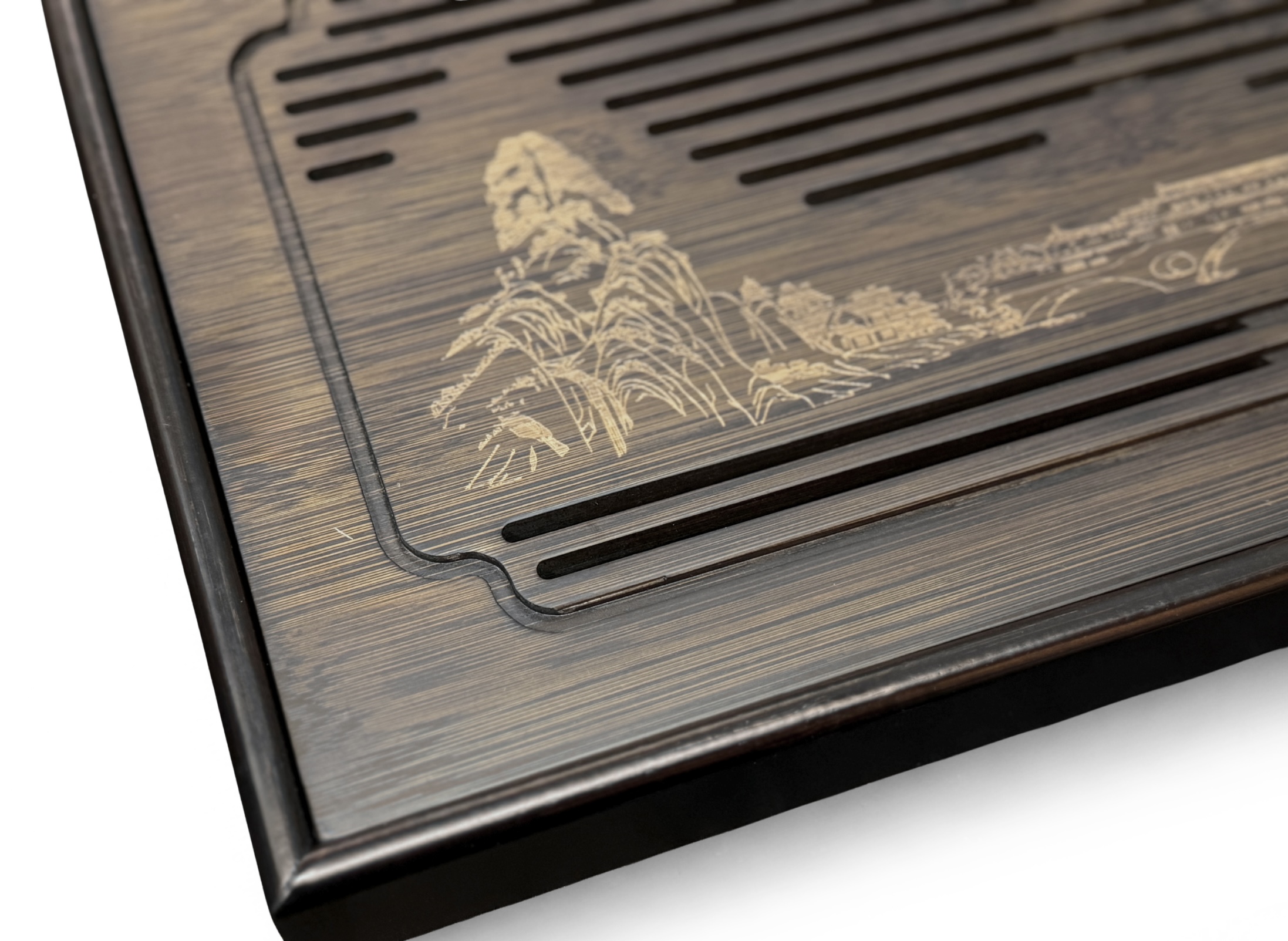 Chapan Shan Gong to klasyczna bambusowa deska herbaciana stworzona z myślą o wygodnych i estetycznych sesjach gongfu cha. Wykonana z naturalnego bambusa, łączy lekkość konstrukcji z dobrą odpornością na wilgoć. Powierzchnia została ozdobiona subtelnym grawerem przedstawiającym krajobraz górski, co nadaje desce spokojny i tradycyjny charakter. Kompaktowy format sprawia, że chapan doskonale sprawdzi się zarówno w domowym zaciszu, jak i w herbaciarni.