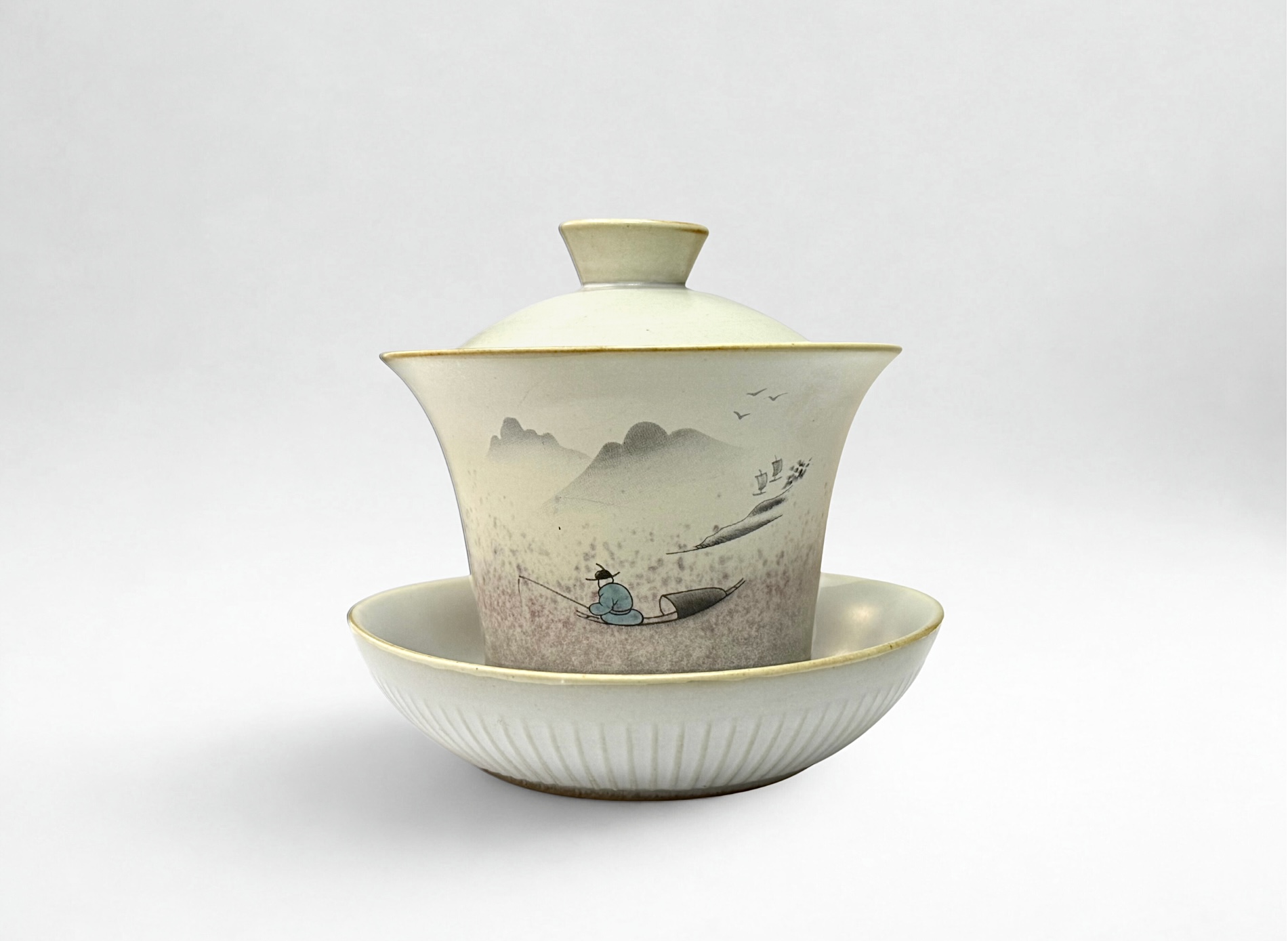 Керамічна гайвань «Рибак» 180 мл – класичний китайський посуд для заварювання чаю. Прикрашена ручним розписом із зображенням рибака та гірського краєвиду, вона поєднує в собі естетику й функціональність. Об’єм 180 мл робить гайвань практичною як для щоденного чаювання, так і для зустрічей у стилі гунфу ча. Висока підставка захищає руки від гарячого та полегшує наливання напою. Це начиння вносить у ритуал спокій і гармонію, завдяки чому кожна мить із чаєм стає особливою.